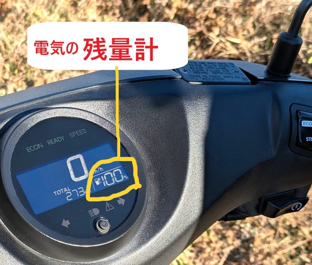 電気量は%で表示されていますが、どのくらい電気量が減るのかは、走り方・距離などで違うようです。