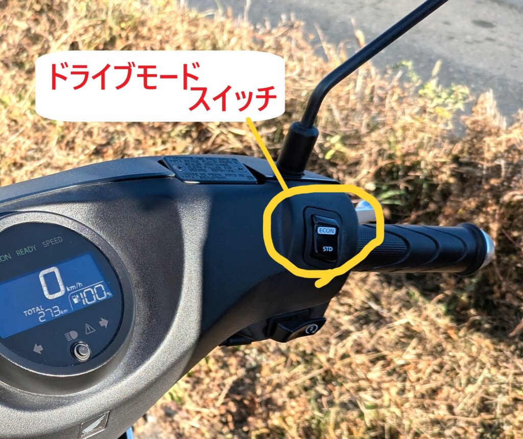 今回の電動バイクには、右ハンドル近くにドライブモードスイッチというのがあり、